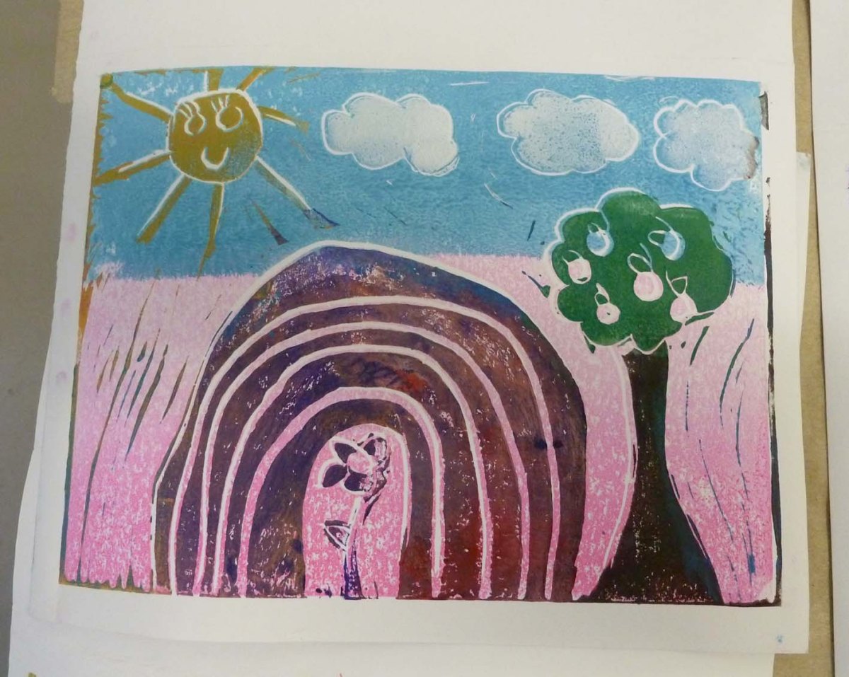 Linocut on paper by 8 year old Published September 15, 2016 at 1417 × 1131 in Workshops ← Previous Next → Linocut on paper by 8 year old Like Loading...
